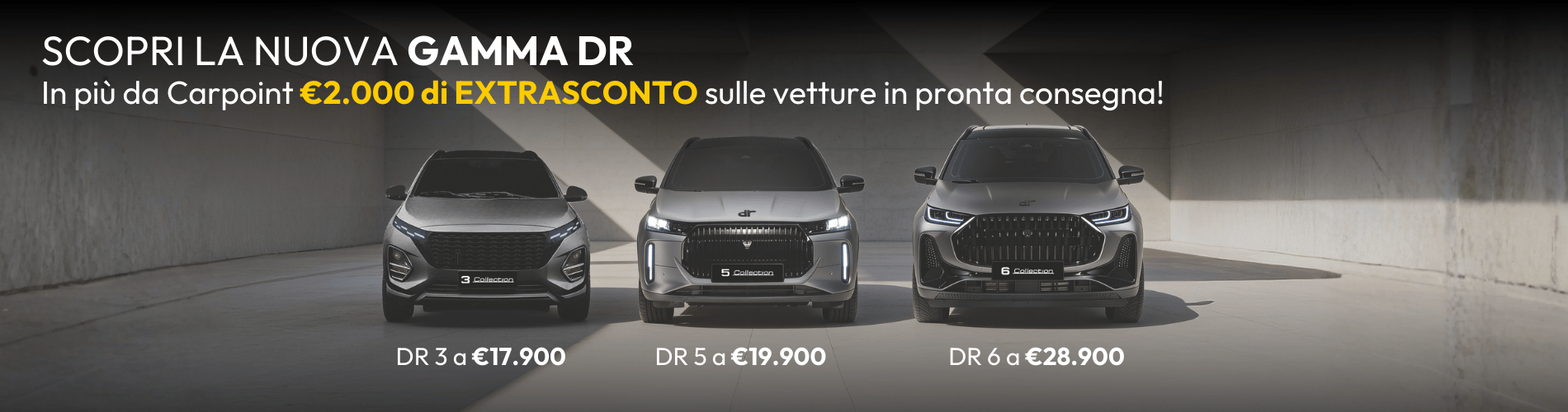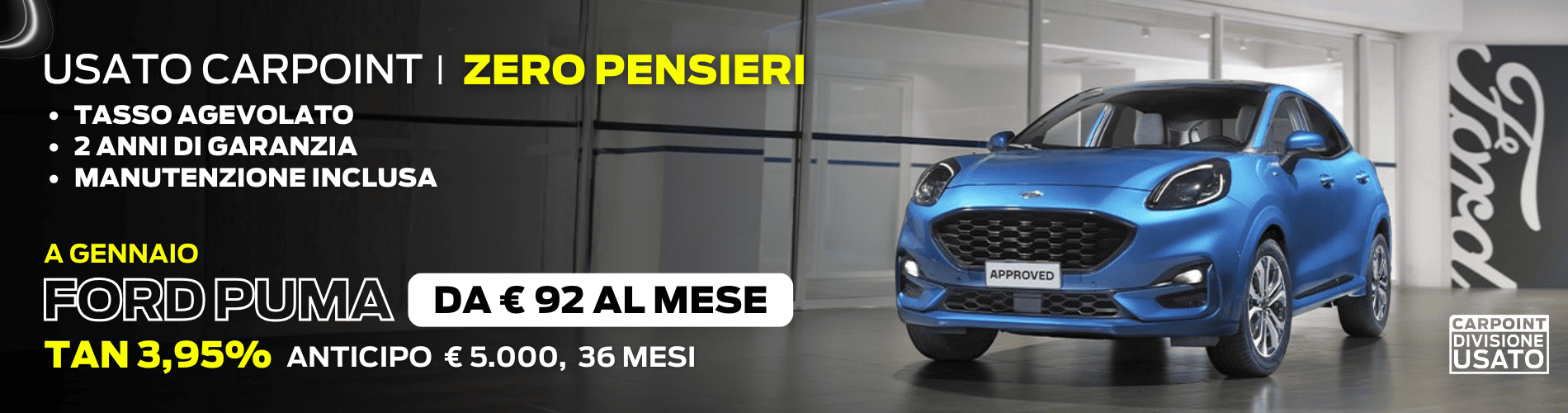 Da Carpoint i clienti possono trovare un’ampia offerta di veicoli - nuovi del marchio Ford, Volkswagen, Hyundai e oggi Mazda, Omoda & Jaecoo, Dr Automobiles, usati e Km Zero di tutti i marchi- oltre a fruire di una serie di servizi che vanno dall’ assistenza delle nostre officine, passando per l’agenzia di assicurazione, fino ad arrivare alle gestione delle pratiche auto.