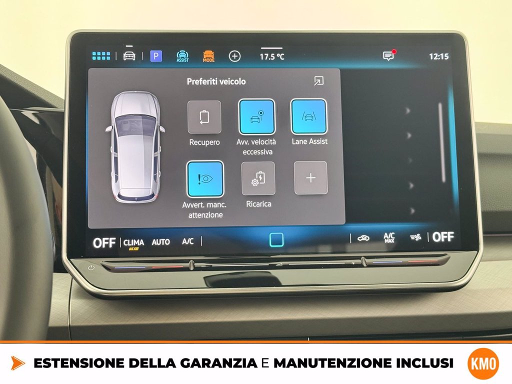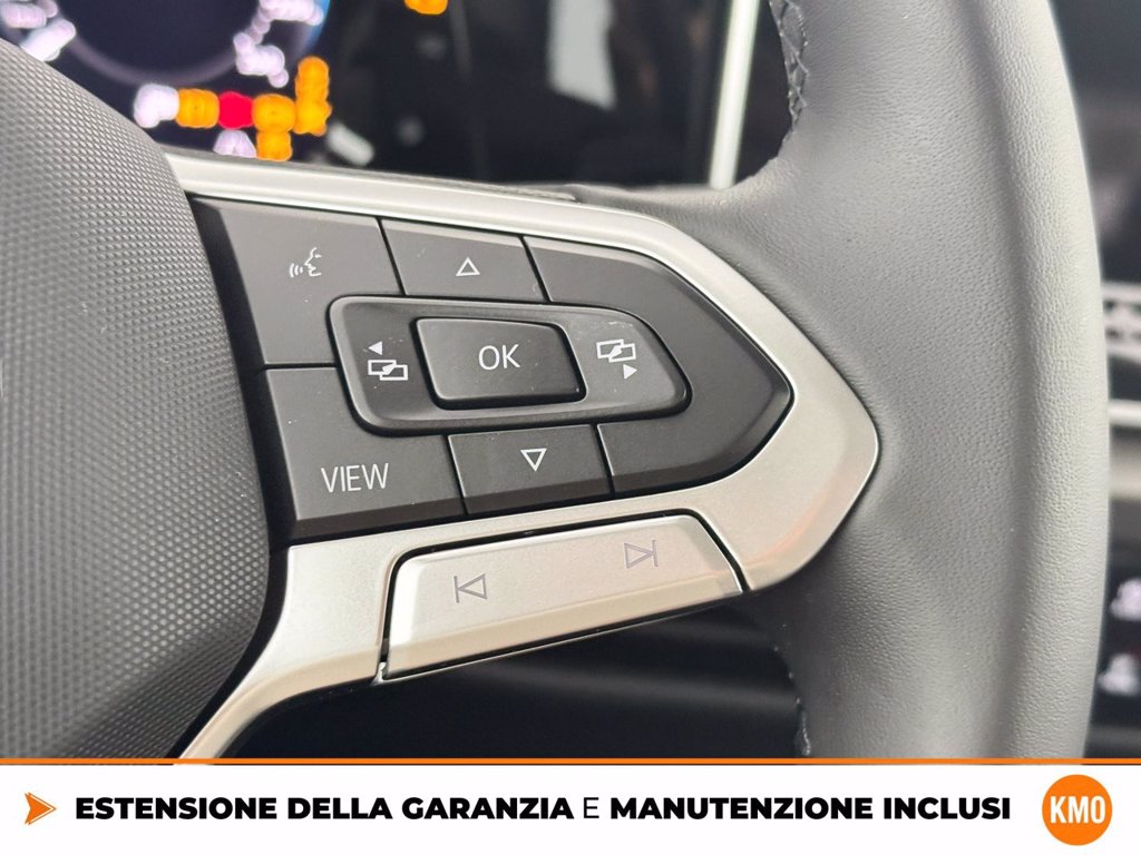 Adaptive Cruise Control - ACC e Front Assist Ambient Light (30 tonalitU) Cerchi in lega Catania 7,5 J x 18 Black con superficie diamantata Codice Interno Cristalli posteriori e lunotto oscurati Fari IQ.Light LED Performance IQ.Drive Pack LED Performance Pack Light assist Ready for We Connect e We Connect Plus o VW Connect e VW Connect Plus Rivestimento sedili in tessuto ArtVelours e sedili anteriori Supplemento colore speciale e/o metallizzato TECH PACK Versioni Plus Videocamera per retromarcia Rear view Volkswagen Extra Time 2 anni fino a 80.000 km