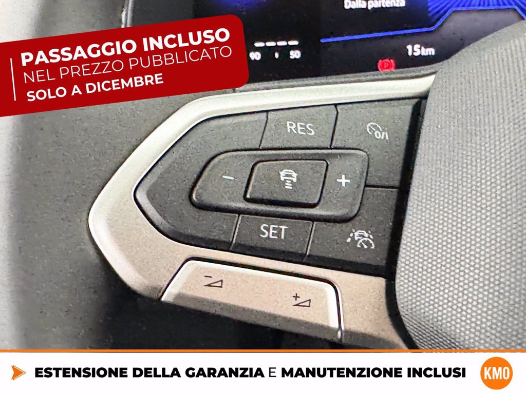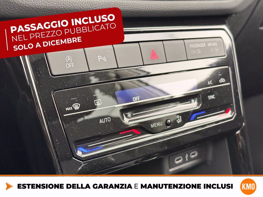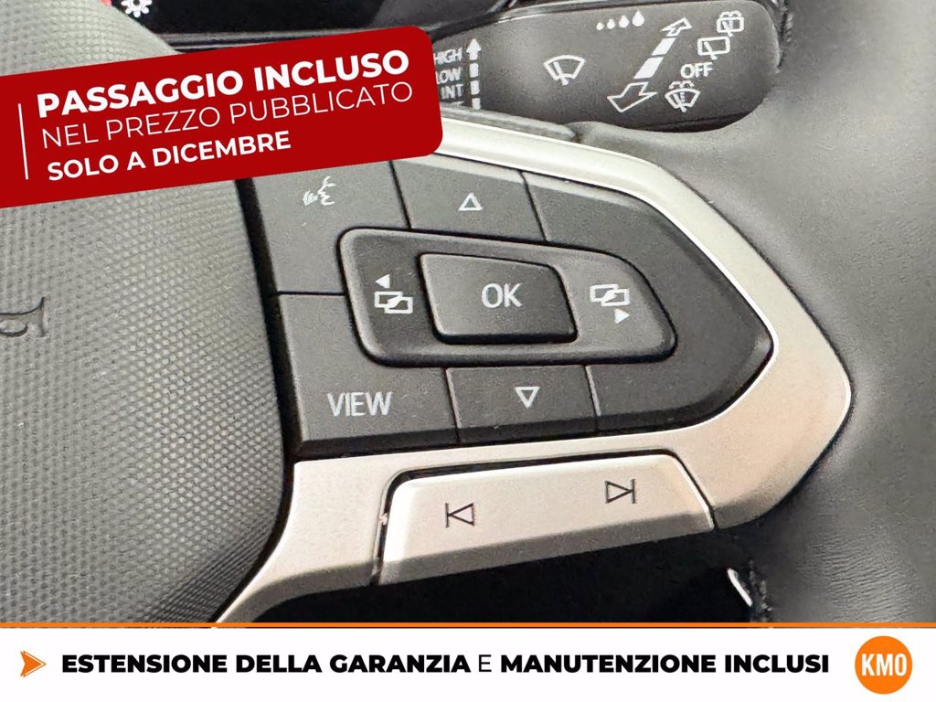 Cerchi in lega Manila 6,5 J x 17 Black con superficie diamantata Chiusura centralizzata Keyless-Entry senza dispositivo di sicurezza Safe Climatronic Air Care Climatronic con regolazione a 2 zone e filtro Codice Interno Cristalli posteriori e lunotto oscurati Edition Plus IQ.Drive Pack Light & Vision Pack Plus Radio Ready 2 Discover Ready for We Connect e We Connect Plus o VW Connect e VW Connect Plus Ruota di scorta Supplemento colore speciale e/o metallizzato TECH PACK Videocamera per retromarcia Rear view Volkswagen Extra Time 2 anni fino a 80.000 km