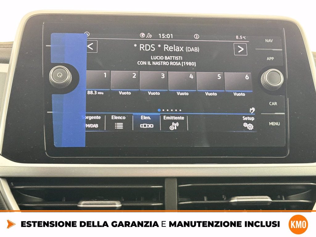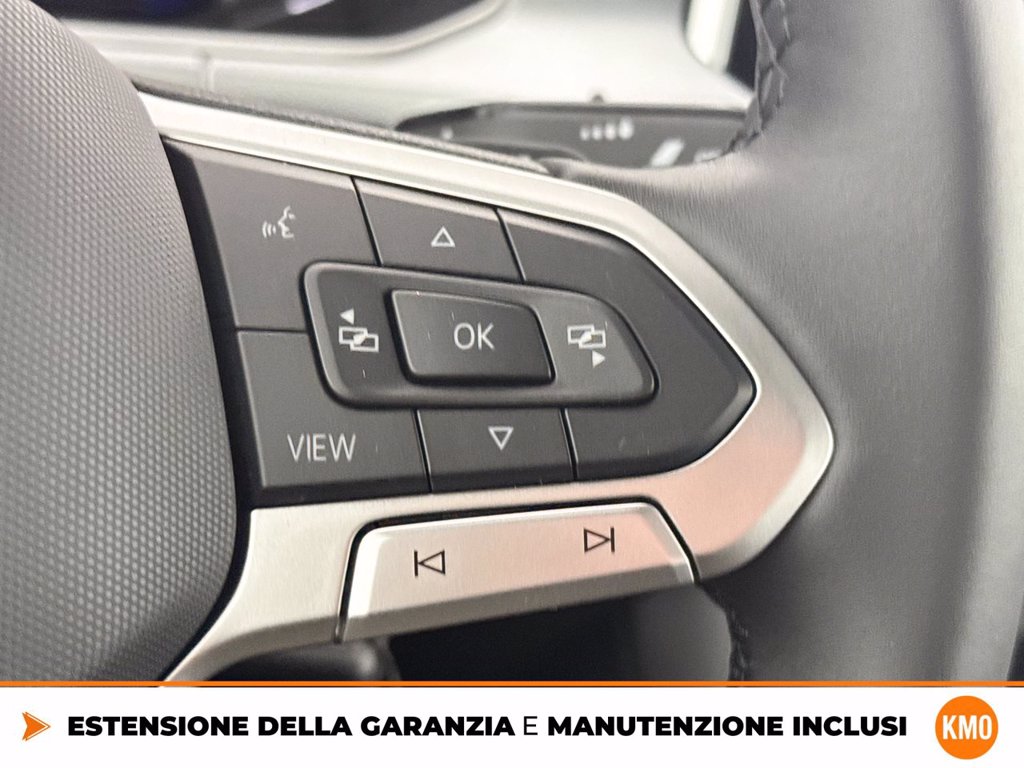 Cerchi in lega Portimao 7 J x 18 con superfcie diamantata e pneumatici Fari anteriori full LED adattivi con luci di svolta dinamiche e lavafari FRANGIVENTO Radio Ready 2 Discover Ready for We Connect e We Connect Plus o VW Connect e VW Connect Plus Ruota di scorta in acciaio di dimensioni ridotte Supplemento colore speciale e/o metallizzato Volkswagen Extra Time 2 anni fino a 80.000 km