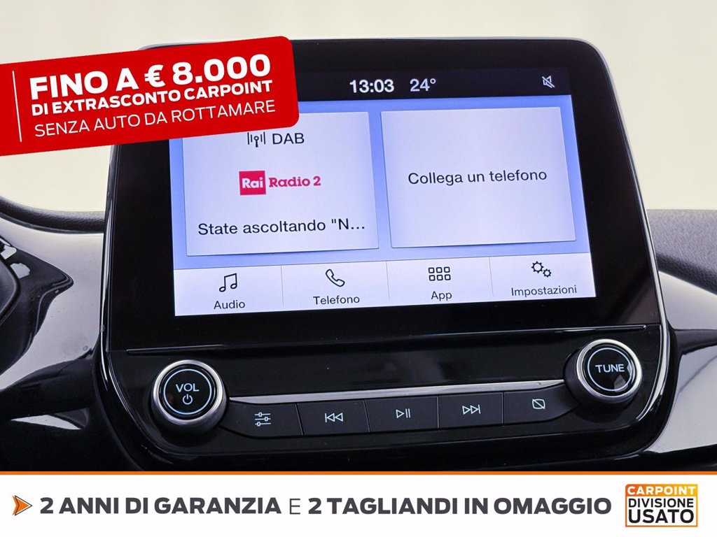 - SYNC 2.5 radio con schermo Touchscreen TFT 8", Bluetooth, funzione mirroring Apple CarPlay, Android Auto, 6 altoparlanti con DAB