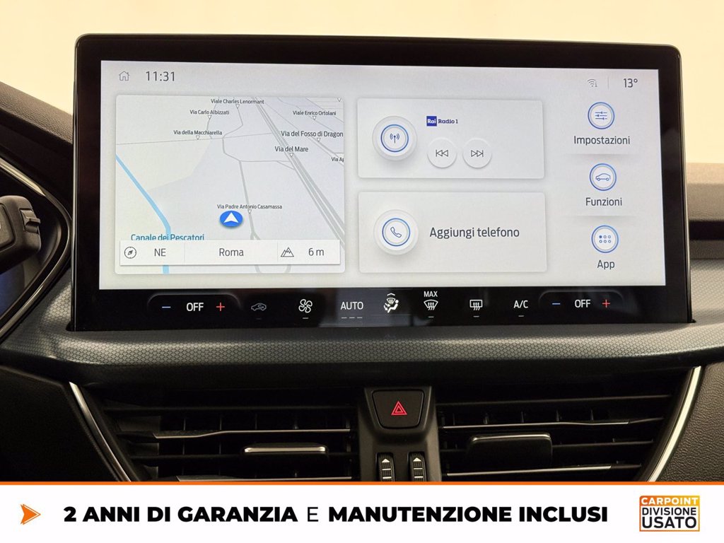 - FordPass servizi di connessione avanzata per 1 anno (Navigazione connessa, Local Hazard Information, Ford Secure, assistenza connessa in caso di furto)