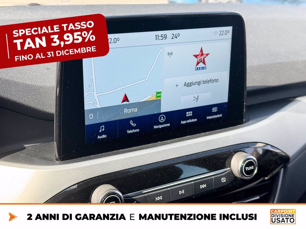 - SYNC 3 Radio DAB, Touch screen TFT 8''', Navigatore, 6 altoparlanti, USB, Comandi al volante