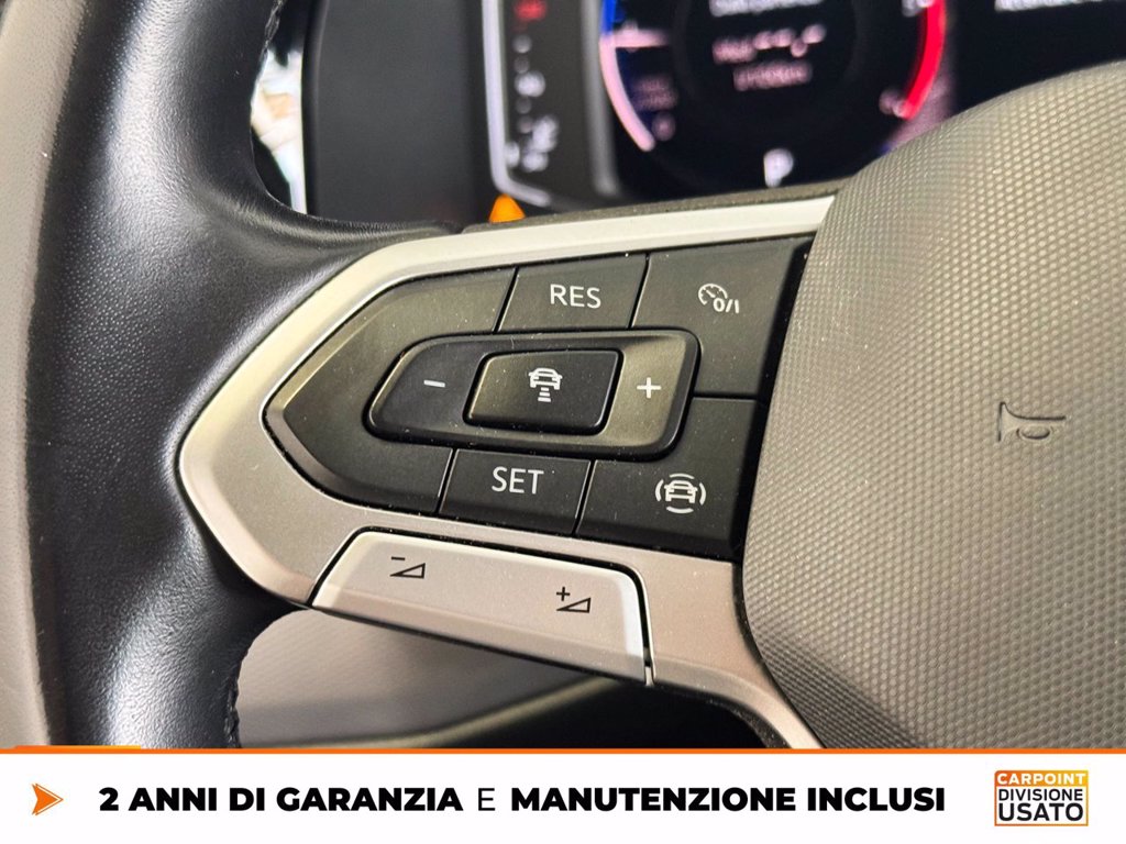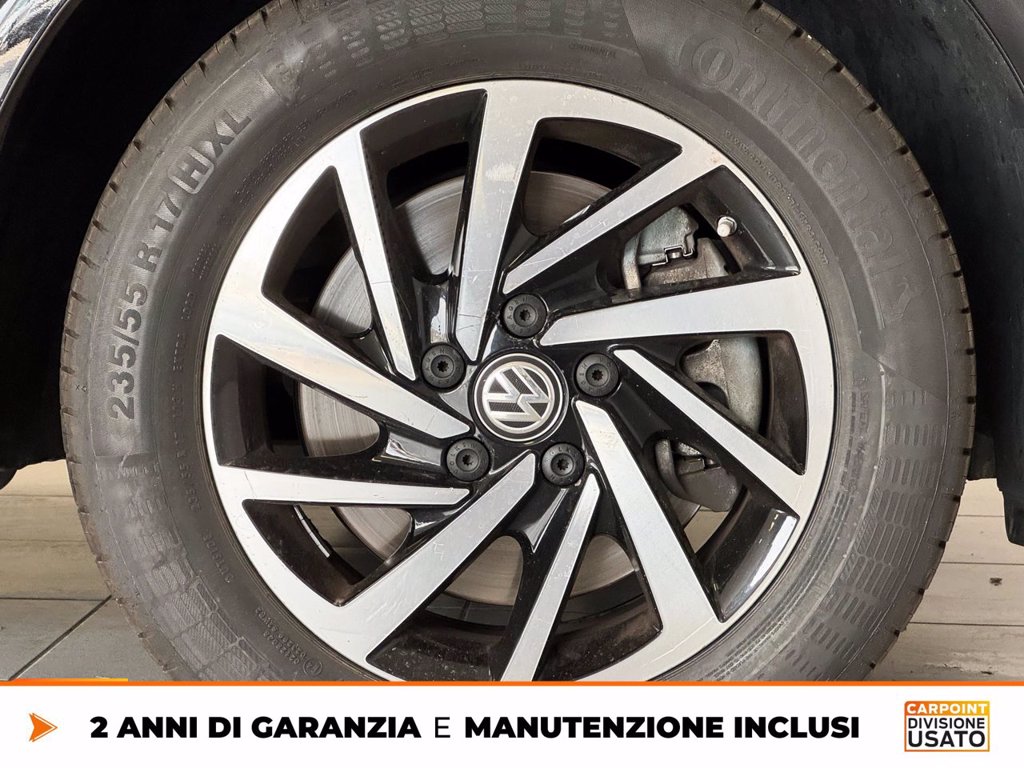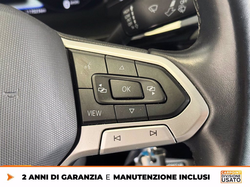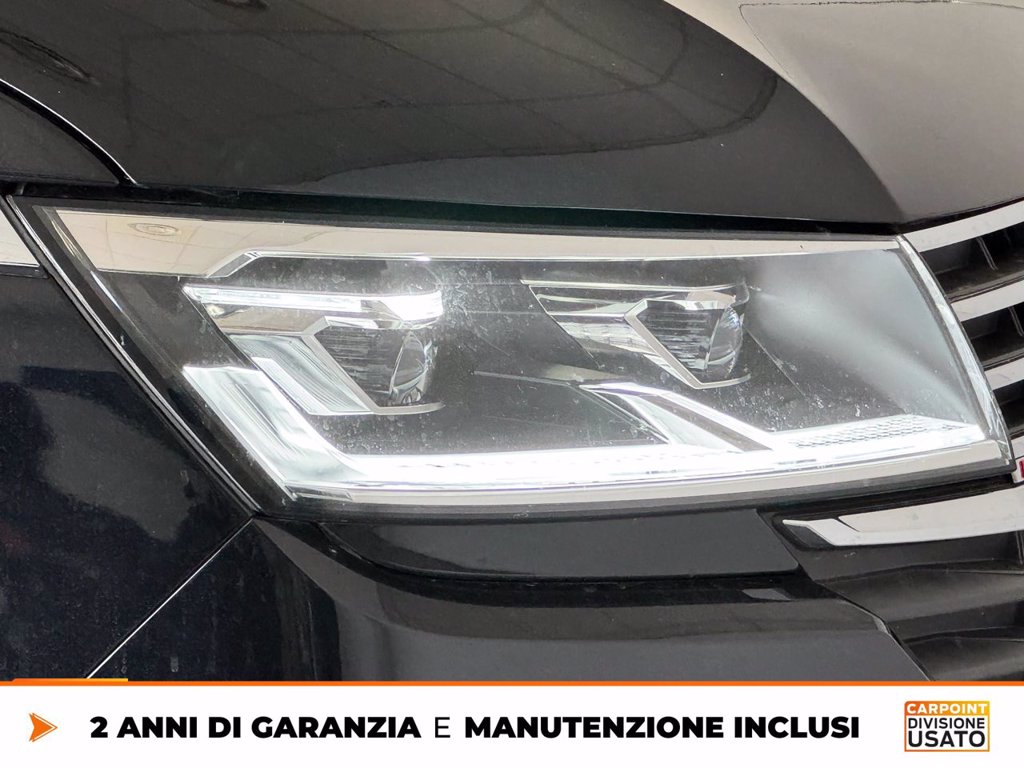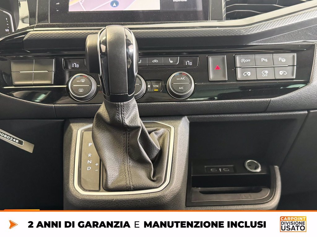 2 contenitori porta rifiuti e 3 cassettisotto la panca da 3 posti nel vano Adaptive Cruise Control fino a 210 km/h con limitatore, Front Assist e frenat Airbag laterale anteriore, airbag per la testa anteriore e airbag per la Attrezzi di bordo e martinetto Ausilio per partenza in salita / ausilioper partenza in discesa Batteria piy potente e alternatore standard Cerchi in lega Woodstock 7J x 17, in Nero, superficie tornita lucida Dispositivo assistenza abbaglianti Dynamic Road Sign Display sistema lettura dei segnali stradali Extra Time 2 anni fino a 80.000 km Finestrino scorrevole destro nel vano passeggeri Finestrino scorrevole sinistro nel vano passeggeri Illuminazione interna con tecnica a LED nel vano passeggeri/vano di carico e Interfaccia per telefono cellulare Comfort con funzione di ricarica Invertitore e presa 230 V per Europa sotto il sedile conducente Italia Lane Assist assistente mantenimento corsia con Cruise Control Pneumatici quattro stagioni 235/55 R17 103H XL, resistenza al Predisposizione per We Connect e We Connect Plus Predisposizione per supporti per carico sul tetto Protezione bordo di carico in acciaio e protezione paraurti in materiale Rear View Camera System retrocamera durante retromarcia (linee statiche) Ruota di scorta di dimensioni normali, acciaio Sbloccaggio portellone/cofano posterioredall'interno (elettr.) Senza pellicola adesiva Serbatoio diesel 80l Service Plan - 4 anni oppure 80 000 km Sistema di controllo della pressione dei pneumatici (direttamente misurabile) Sistema di navigazione Discover Pro incluso Streaming & Internet (traffico Specch. retrovis. est., ripiegab./regolab. elettr., Supplemento colore speciale e/o metallizzato Versione fumatori presa 12 V con accendisigari e posacenere nella