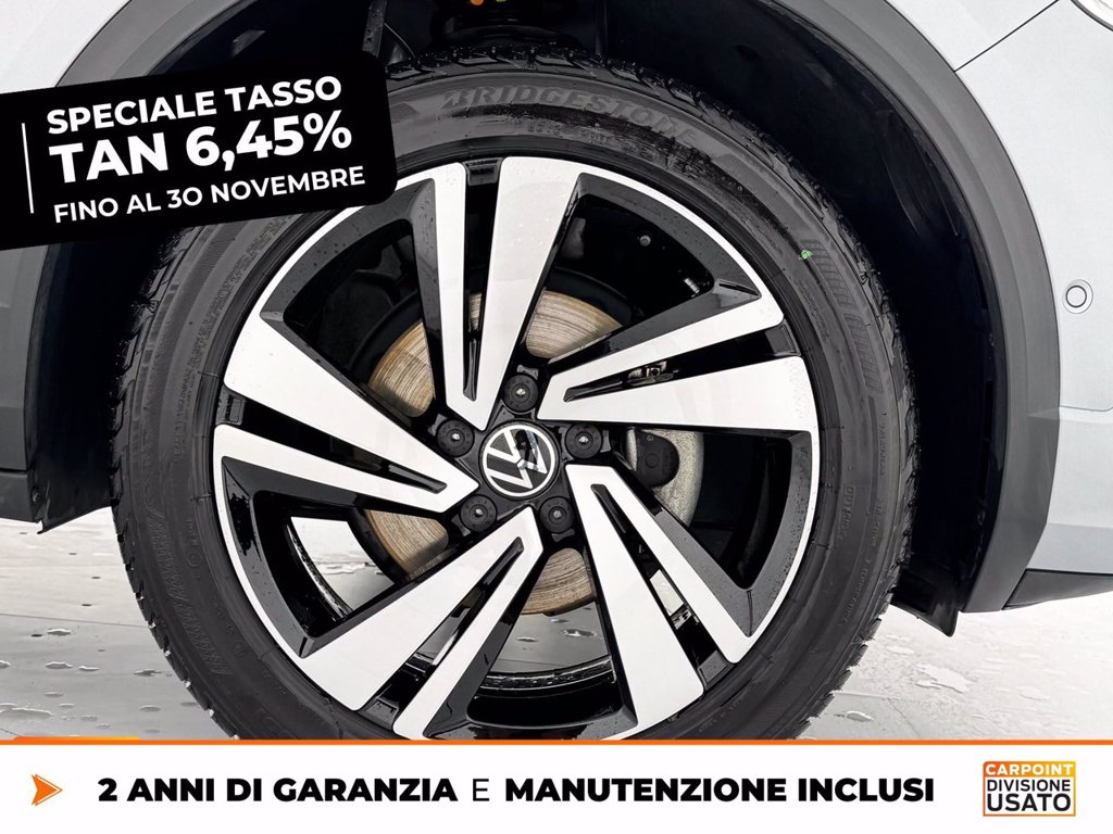 Adattamento equipaggiamenti Cerchi in lega Nevada 7 J x 18 Black, Volkswagen R, con superficie diamantata Climatronic Air Care Climatronic con regolazione a 2 zone e filtro Design pack Fari IQ.Light LED Performance IQ.DRIVE-Pack Keyless Entry & Go Radio Ready 2 Discover Ready for We Connect e We Connect Plus o VW Connect e VW Connect Plus Senza sistema di sicurezza ampliato Supplemento colore speciale e/o metallizzato TECH PACK TEST DRIVE VOLKSWAGEN Videocamera per retromarcia Rear view Volkswagen Extra Time 2 anni fino a 80.000 km