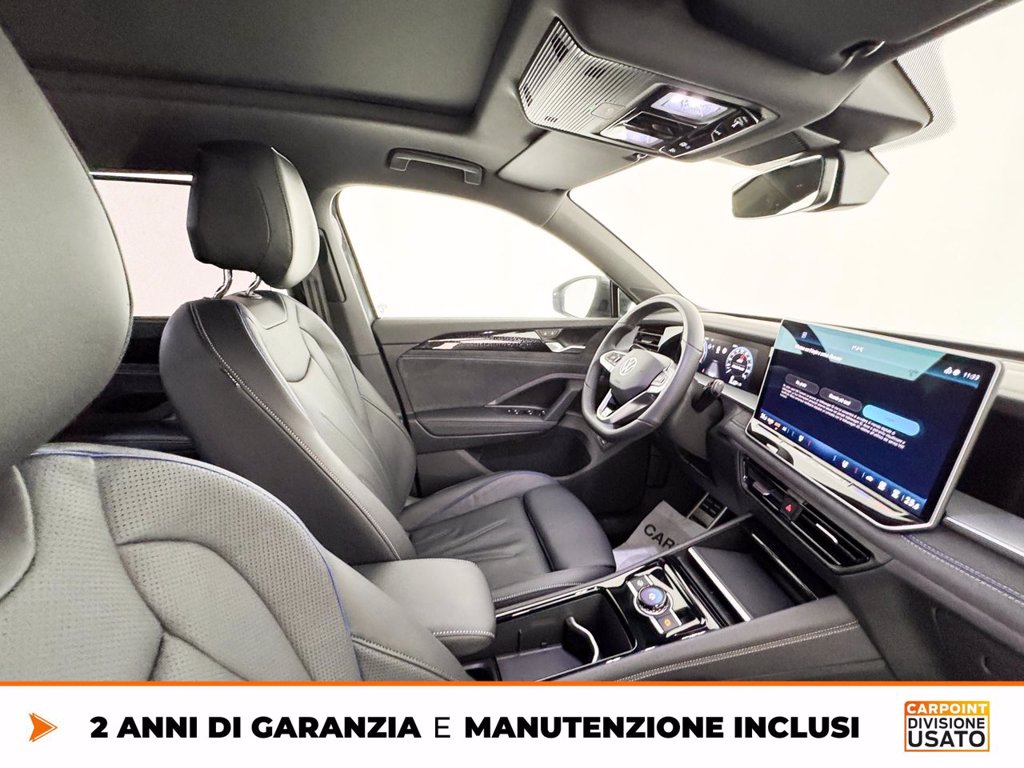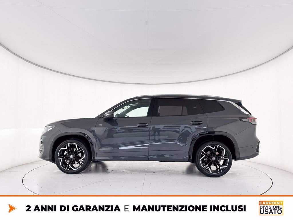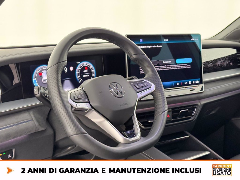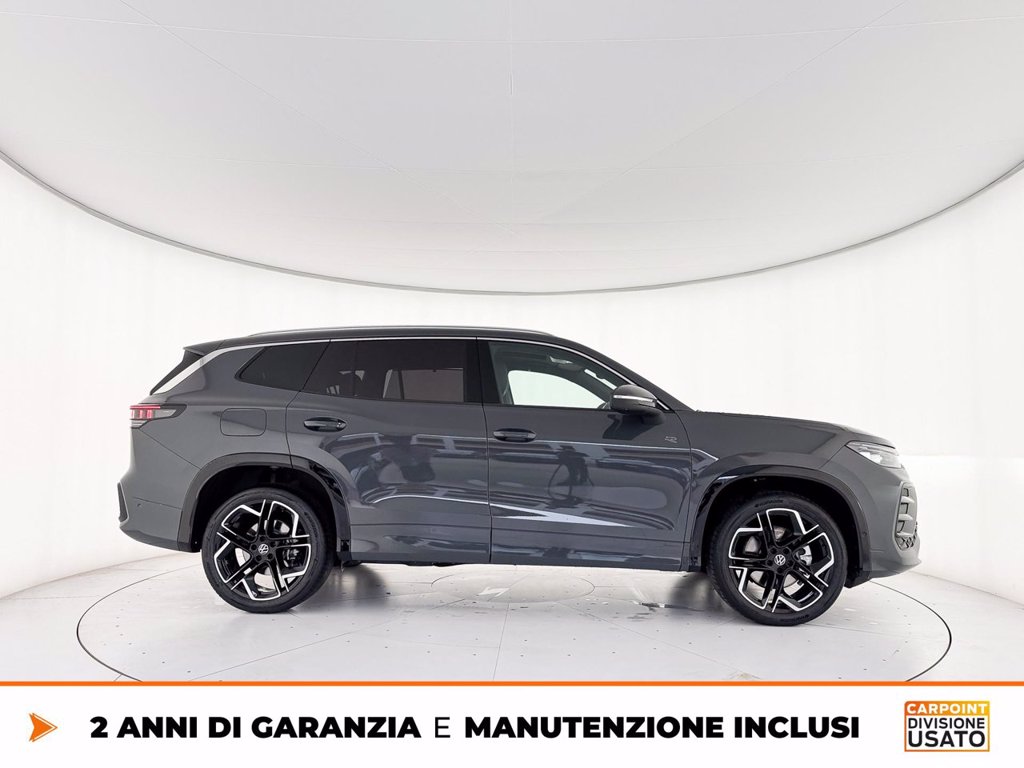 5 Stelle Euro NCAP Cerchi in lega York 8,5 J x 20 Black, Volkswagen R, con superfice diamantata Comfort pack Commercializzazione versione 5 Cristalli insonorizzati, vetri posteriori e lunotto oscurati Fari IQ.Light LED Matrix HD Gancio traino estraibile con sbloccaggio elettrico e con sistema di manovra del IQ.Drive Pack Navigatore Discover Pro Max Ready for We Connect e We Connect Plus o VW Connect e VW Connect Plus Sedili ErgoActive Plus Sterzo progressivo Supplemento colore speciale e/o metallizzato Terza fila dei sedili (7 posti totali) Tetto panoramico ad azionamento elettrico Versione Plus Volkswagen Extra Time 2 anni fino a 80.000 km Volume di introduzione