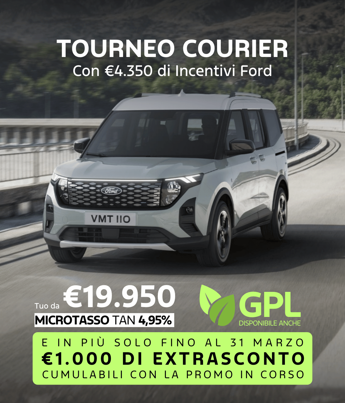 Design ispirato ai SUV, tecnologie intuitive, e tutto il risparmio del GPL: il Ford Tourneo Courier è pronto a semplificare la tua vita e alleggerire i tuoi costi.