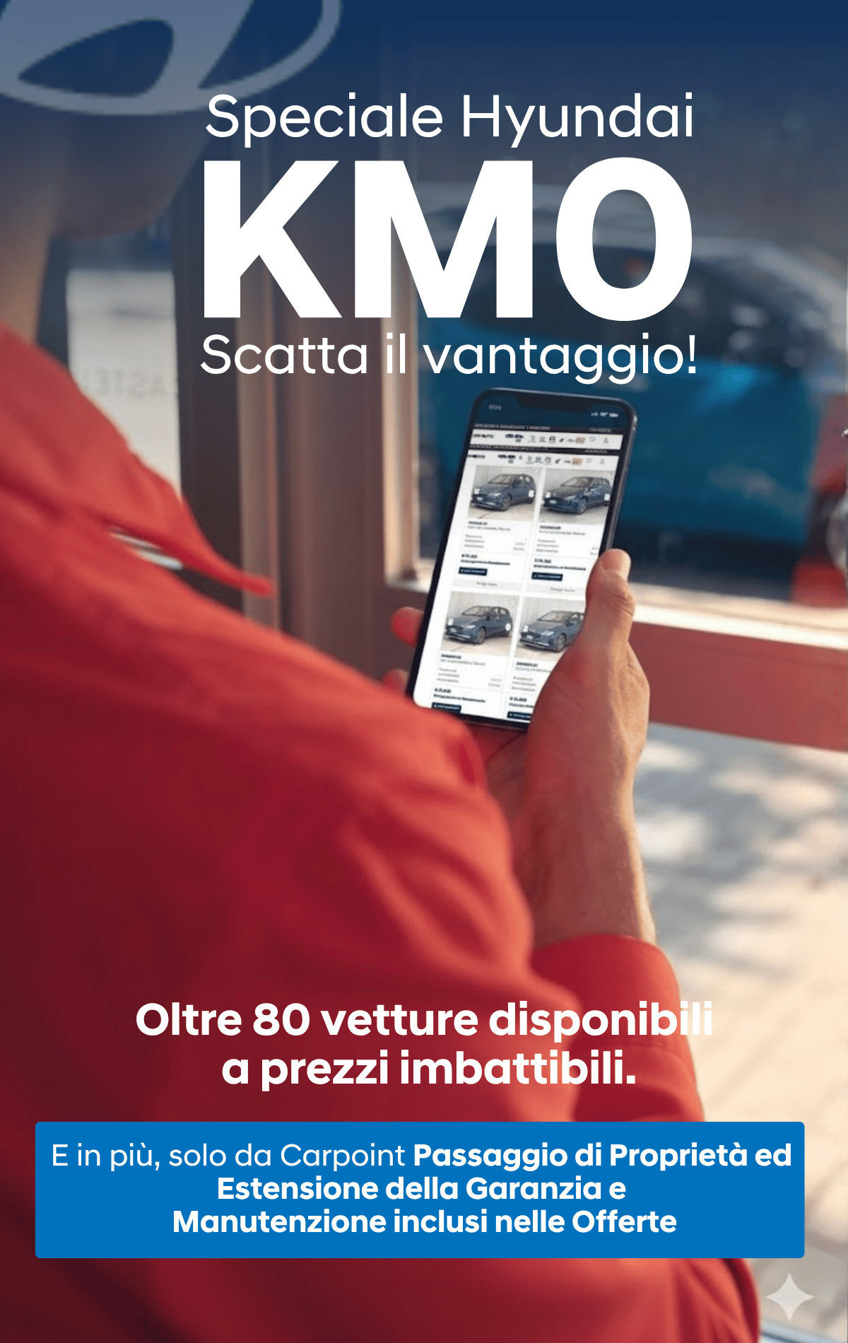 Da Carpoint trovi oltre 80 Hyundai Km Zero a prezzi imbattibili e consegna immediata. Dalle citycar più agili alle SUV più spaziose.