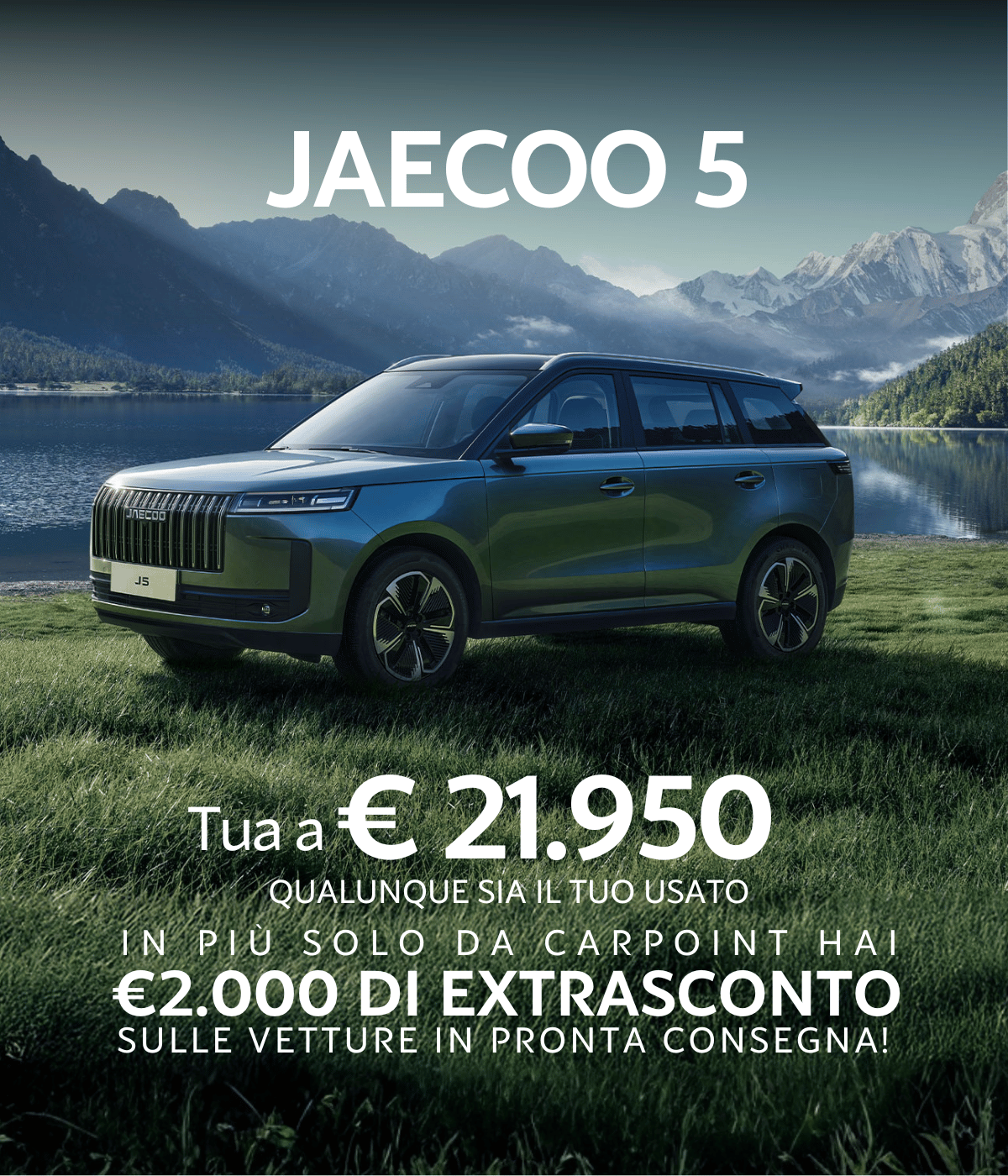 Creata per chi ama muoversi, vivendo ogni percorso con energia autentica. Con JAECOO 5, ogni spostamento assume il valore di un’esperienza di libertà. Il design solido, gli interni accoglienti e le tecnologie intelligenti si fondono in un SUV compatto che valorizza le persone, la natura e ogni forma di compagnia.