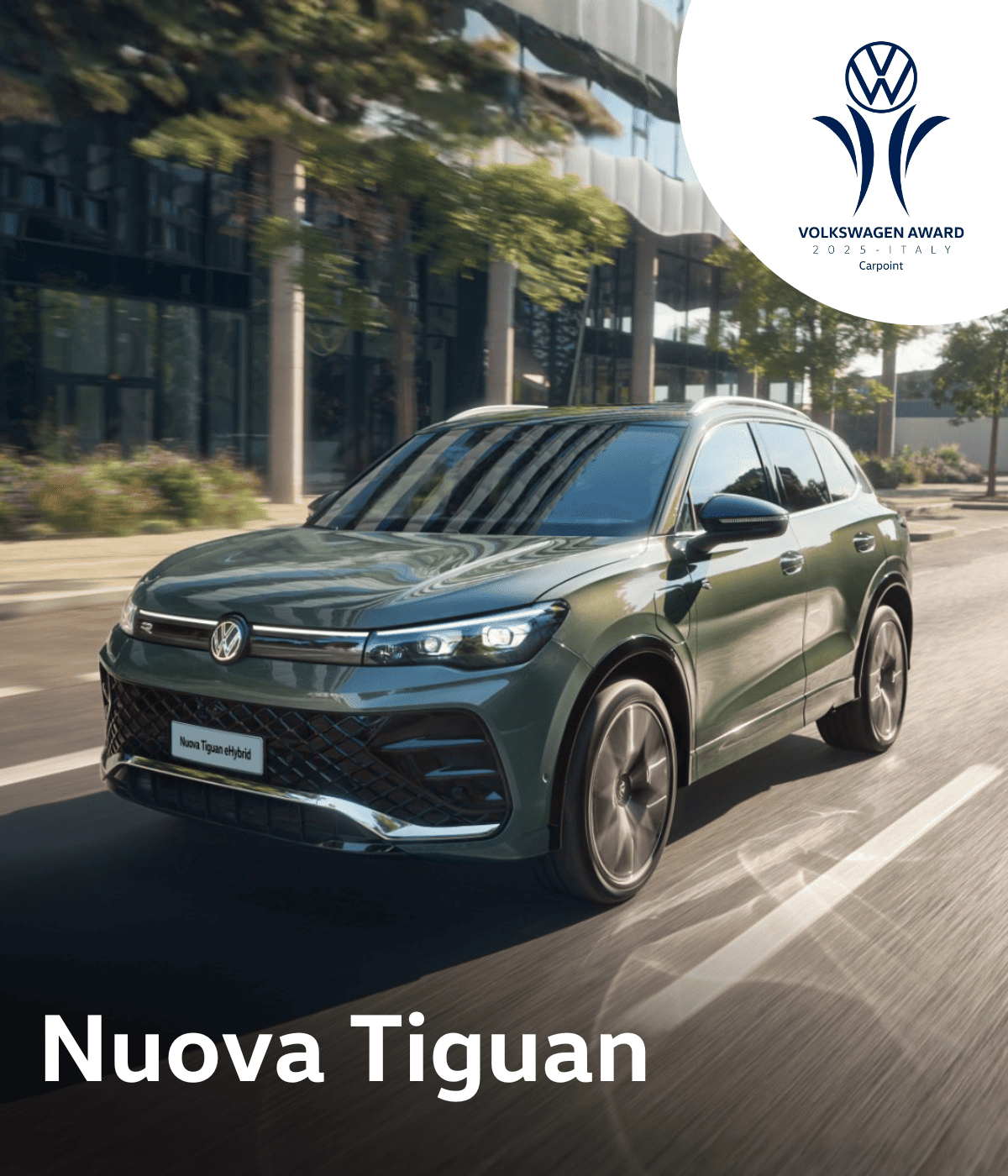 Nuova Tiguan Edition Plus 1.5 TSI eHybrid 204 CV DSG tua a € 42.517,00 (chiavi in mano IPT esclusa). Prezzo di Listino € 50.050,00. Il prezzo in promozione di € 42.517,00 è calcolato tenendo in considerazione un contributo della marca Volkswagen e delle Concessionarie Volkswagen aderenti all'iniziativa pari ad € 7.533,00 - Anticipo € 5.000,00 - Finanziamento di € 37.897,00 in 35 rate da € 378,98. Interessi € 6.178,08 - TAN 5,99% fisso - TAEG 6,83% - Valore Futuro Garantito pari alla Rata Finale di € 30.810,78, per un chilometraggio totale massimo di 30.000 km - In caso di restituzione del veicolo eccedenza chilometrica 0,20 euro/km. Spese istruttoria pratica € 380,00 (incluse nell'importo totale del credito) - Importo totale del credito € 37.897,00 - Spese di incasso rata € 3,40 / mese - costo comunicazioni periodiche € 0 (in caso di invio cartaceo, il costo è pari ad 1€/anno) - Imposta di bollo/sostitutiva € 94,74 - Importo totale dovuto dal richiedente € 44.295,22. Offerta valida per cliente privato - Gli importi fin qui indicati sono da considerarsi IVA inclusa - Informazioni Europee di Base sul Credito al Consumo, Fogli Informativi e condizioni dei servizi accessori disponibili presso le Concessionarie Volkswagen. Salvo approvazione Volkswagen Financial Services. Volkswagen Financial Services è un marchio commerciale condiviso dalle succursali di Volkswagen Bank GmbH (p. IVA 12513730155) per il credito al consumo, per il leasing finanziario e per i prodotti assicurativi e Volkswagen Leasing GmbH (p. IVA 12549080153) per il noleggio e i piani di manutenzione. Il prodotto Progetto Valore Volkswagen è realizzato e distribuito da Volkswagen Bank GmbH. Offerta valida sino al 31.01.2026 in caso di permuta o rottamazione. La vettura raffigurata è puramente indicativa.