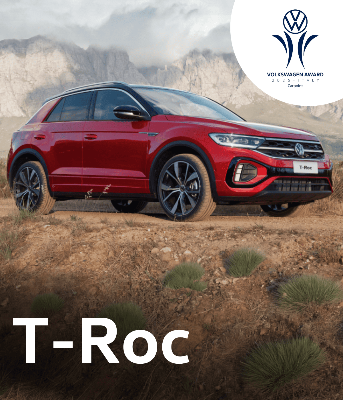 T-Roc Edition Plus 1.0 TSI 115 CV tuo a € 24.900,00 (chiavi in mano IPT esclusa). Prezzo di Listino € 30.550,00. Il prezzo in promozione di € 24.900,00 è calcolato tenendo in considerazione un contributo della marca Volkswagen e delle Concessionarie Volkswagen aderenti all'iniziativa pari ad € 5.650,00 – Anticipo € 0 – Finanziamento di € 24.900,00 in 24 rate da € 299,00. Interessi € 2.020,17 – TAN 5,99% fisso – TAEG 6,85% – Valore Futuro Garantito pari alla Rata Finale di € 18.741,17, per un chilometraggio totale massimo di 30.000 km – In caso di restituzione del veicolo eccedenza chilometrica 0,07 euro/km. Spese istruttoria pratica € 360,00 (incluse nell’importo totale del credito) – Importo totale del credito € 24.900,00 – Spese di incasso rata € 3,25/mese – costo comunicazioni periodiche € 0 (in caso di invio cartaceo, il costo è pari ad 1€/anno) – Imposta di bollo/sostitutiva € 51,90 – Importo totale dovuto dal richiedente € 26.971,17. Offerta valida per cliente privato – Gli importi fin qui indicati sono da considerarsi IVA inclusa – Informazioni Europee di Base sul Credito al Consumo, Fogli Informativi e condizioni dei servizi accessori disponibili presso le Concessionarie Volkswagen. Salvo approvazione Volkswagen Financial Services. Volkswagen Financial Services è un marchio commerciale condiviso dalle succursali di Volkswagen Bank GmbH (p. IVA 12513730155) per il credito al consumo, per il leasing finanziario e per i prodotti assicurativi e Volkswagen Leasing GmbH (p. IVA 12549080153) per il noleggio e i piani di manutenzione. Il prodotto Progetto Valore Volkswagen è realizzato e distribuito da Volkswagen Bank GmbH. Offerta valida sino al 31.10.2025. La vettura raffigurata è puramente indicativa.